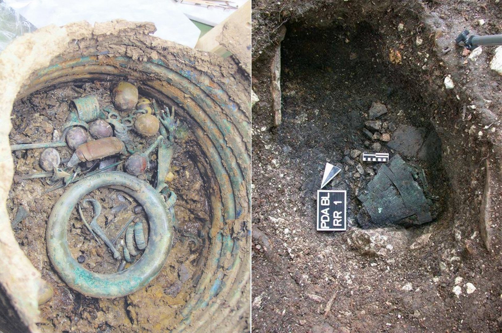 La straordinaria scoperta di questi due importanti siti archeologici a circa 900 m d’altitudine, ha portato alla luce due necropoli, quella romana di Staol di Curago e quella preromana di Pian de La Gnela, lungo le pendici del Monte Dolada nei dintorni di Pieve d’Alpago in luoghi accessibili solo a piedi. I reperti di grande rilevanza e pregio artistico sono in parte oggi conservati presso il Museo di Storia Naturale di Chies d’Alpago, come le urne cinerarie di bronzo o di vetro con i rispettivi corredi costituiti da fibule e monete trovate nella necropoli di Staol databili dal I al IV secolo d.C. Nel sito di Pian de la Gnela è stata portata alla luce una spettacolare situla in bronzo istoriata datata al VI secolo d.C., un’urna cineraria unica nel suo genere che mostra un corteo di personaggi che si conclude alla base con scene erotiche e con una scena di un parto che non trova paragoni in nessun reperto di questo tipo. Sono stati rinvenuti anche alcuni cavallini in pasta vitrea, nonché elementi di un monile in ambra e uno scettro in bronzo. Al momento questi reperti non sono esposti in attesa di poterli valorizzare nel modo più adeguato.